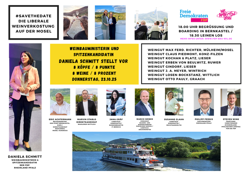 Die FDP tritt an, um auch weiterhin Verantwortung im Kreis zu übernehmen. Insbesondere die Themen Wirtschaft, Bildung, Finanzen, Tourismus sowie Landwirtschaft und Weinbau liegen uns am